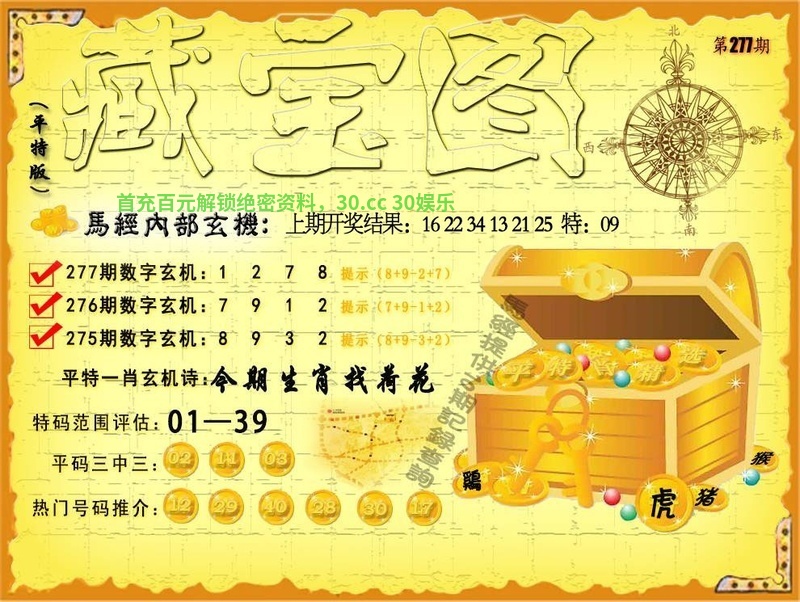 277期:平特藏宝图玄机:【今期生肖找荷花】 解:今期生肖找荷花,解虎,平特虎 推荐平码:12.29.40.28.30.17 开奖结果:46.11.41.33.48.37T16 |